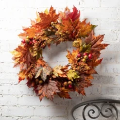 Sullivans Artificial Smilax And Berry 1/2 Orb Decorative Filler 9″H Orange